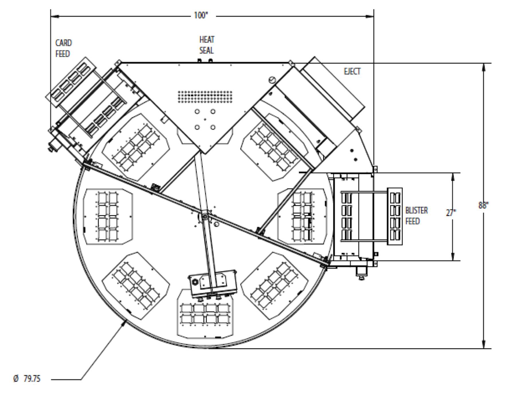 - Suction cups lift the packages from the nesting trays and place them face up on the eject slide for movement to take-off conveyor or table