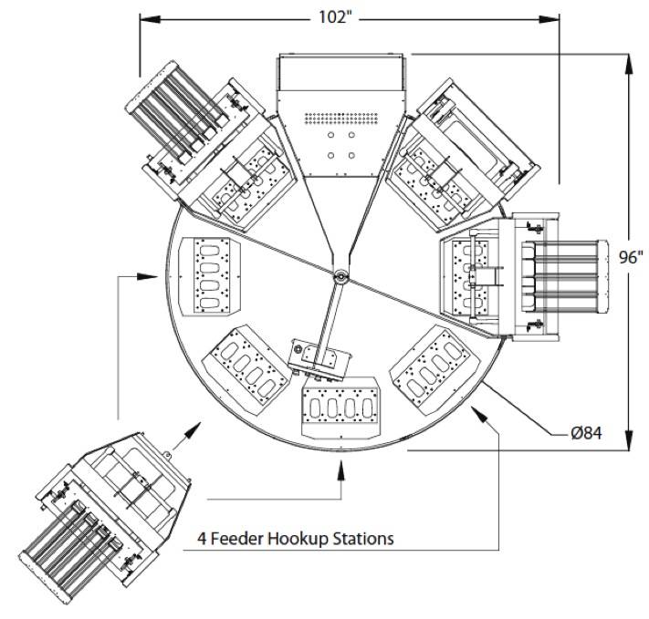 - 5-25 cycles per minute via variable speed servo drives for turntable and feeders, eject