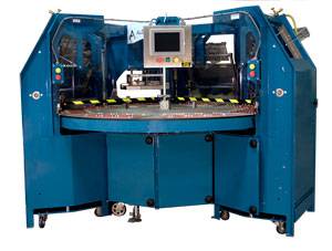 The U8 has an independent electro-mechanical drive system as well as a servo driven turntable. The machine has full PLC control and user friendly operator interface panel. Interlocked door panels on the U8 base allows for quick access to the drive system which in turn allows for quick reconfiguration of the machine in the field.